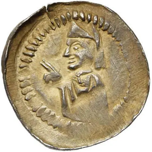 | Descrição do anverso | Mitred bust facing left, blessing with right hand. |