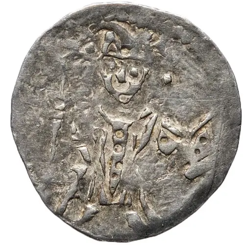| Obverse description | Enthroned bishop with a two-pointed miter, holding a crosier in his right hand and a book in his left. Head between two points. Pearl circle. |