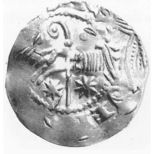 Obverse description Hand holding a crosier with two stars below in a grenetis, legend all around.
