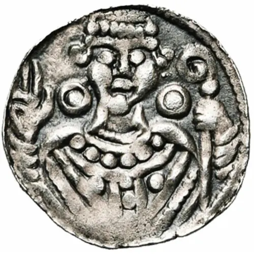 | Obverse description | Abbot facing, wearing skullcap, holding crozier, right hand raised in blessing, flanked by two circles with cental dot. |