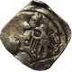 Obverse description Duke standing facing, with fleur-de-lis scepter, and falcon.