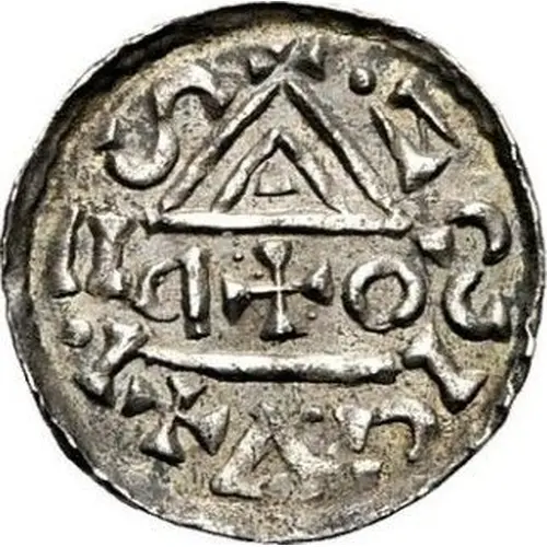 | Obverse description | Central cross with 2 rings on sides, a roof above and a floor below, legend around. |