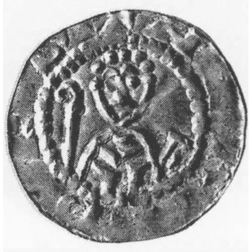 | Obverse description | Facing bust holding a crosier and a book in a grenetis, caption around it. |