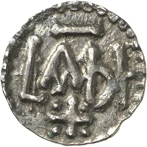 | Descrizione del dritto | Legend under a bar and above a crosslet. |