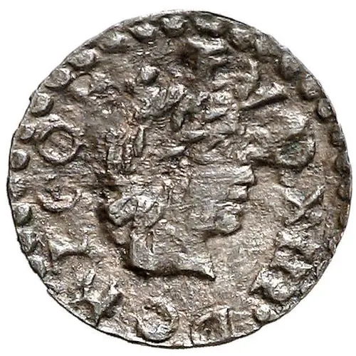 | Reverse description | Long cross divides legend, annulet in first and fourth angles, three bezants in second and third angles. Legend around, in beaded circle. |