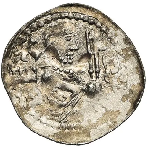 Technical/Grading: Struck on an irregular, often thin silver flan, this denier commonly exhibits traits of medieval minting. High-points for preservation assessment include central cross elements and any facial features or monogram details, which frequently show weaker strikes. Off-center strikes, minor planchet imperfections, and variable strike pressure are typical. A full, even strike is rare, often leaving portions of the legend or design partially visible due to the small module and manual production methods employed during the era.