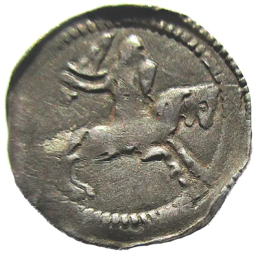 Obverse description Knight with raised sword charging right.