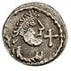| Popis líce | Diademed bust to right, a pelletized cross in front. |