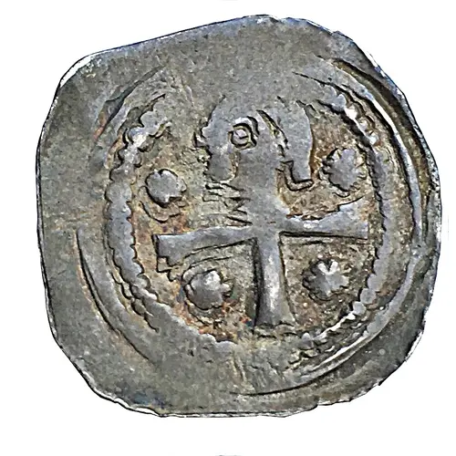 | Obverse description | Cross with left facing bust on top, stars in corners. |