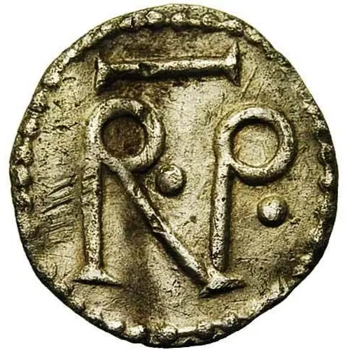 | Reverse description | Monogram ΛNDE, cross on the left, pellets on the right. |