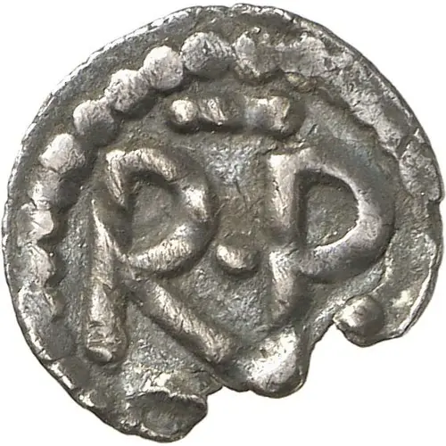 | Obverse lettering | R.P. (Translation: King Pepin.) |