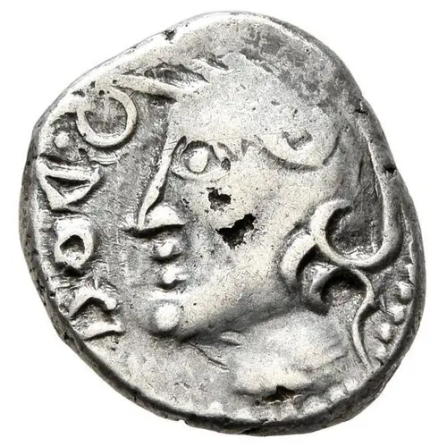 | Mô tả mặt trước | Helmeted head facing left; inscription read from the outer side of the coin. |