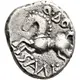 | Mô tả mặt sau | Strapped and bridled horse galloping left; inscription read from the inside of the coin. |