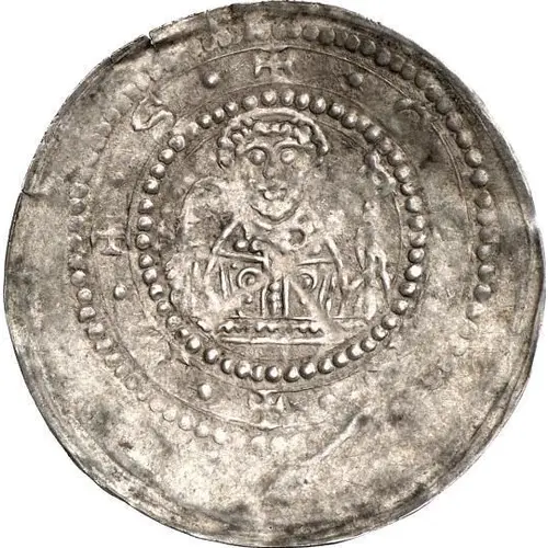 | Popis líce | Bust of the abbot facing with crosier and cross. |