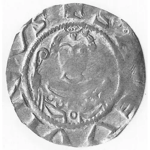 Obverse description Facing bust holding a crosier in a grenetis, surrounding legend.