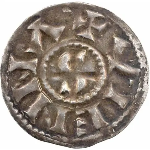 Technical/Grading: This silver denier, at 1.15 grams and 20.5 millimeters, exhibits technical qualities typical of 10th-century feudal minting. High-points for wear are generally the central cross elements and the highest relief areas of lettering. Common technical flaws include irregular flans, off-center strikes, and minor planchet cracks due to manual striking. Strike quality varies significantly; some examples show clear legends, while others are weakly struck or double struck. Silver purity generally maintained a respectable standard for the period, though regional variations existed.