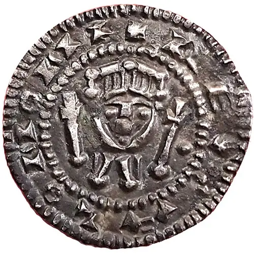Obverse description Head of crowned king in pearl circle; two crosses at the side Letter S is reverse