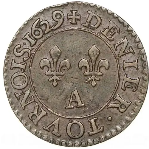 | Legenda rewersu | + DENIER.TOVRNOIS.(millésime). (1) + DENIER.TOVRNOIS.(millésime) (2) + DENIER.TOVRNOIS (millésime) (3) + DENIER.TOVRNOIS (millésime). (4) |