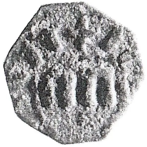 | Obverse description | Shield formed by a succession of grenetis, inside a kind of comb or rake with four teeth, points facing downwards. |