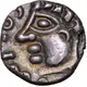 | Descrizione del dritto | Head left with large eye, hair in parallel wavy locks; caption in front of the face; beaded circle. |