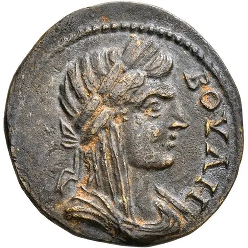 | Obverse description | Laureate and veiled bust of Boule to right. |