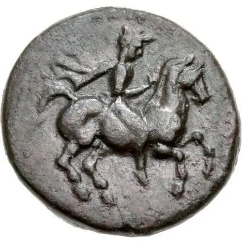 | Obverse description | Thessalian rider wearing petasos and chlamys, prancing right. |