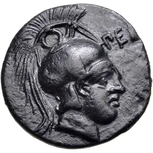 | Obverse description | Helmeted head of Ares right with the letters ΠΕΙ to right |