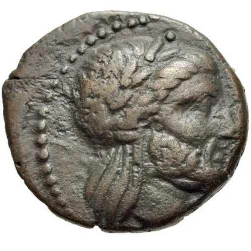 | Description de l’avers | Laureate head of Zeus right |