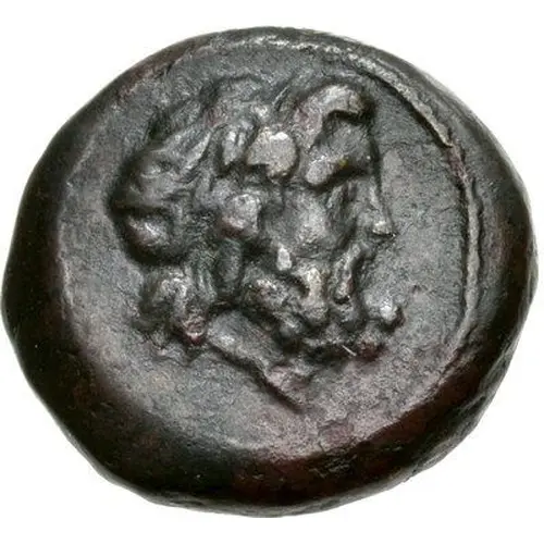 | Obverse description | Laureate head of Zeus right, border of dots. |