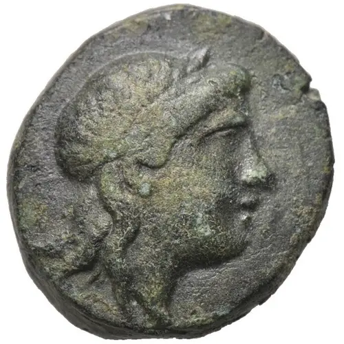 正面描述 Laureate head of Apollo right.