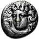 | 表面の説明 | Head of the nymph Meliboeia facing, turned slight to left, and with her hair entwined with bunches of grapes |