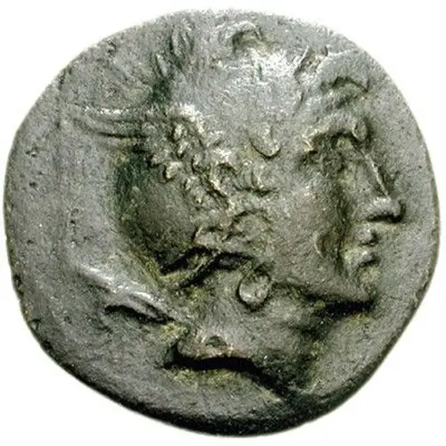 | توضیحات روی سکه | Head of the hero Perseus right, wearing winged Phrygian helmet and harpa over shoulder. |