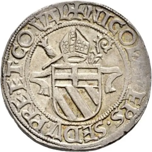 Technical/Grading: Struck in silver, 9.7 grams, this Dicken's technical quality can vary, typical for manual striking methods of the late 15th century. Key high-points for grading include the intricate details of the Bishop's mitre and crozier, the fine lines of heraldic devices, and any facial features if an effigy is present. A premium example would exhibit a strong, even strike across the 30mm flan, with full legibility of legends and crispness in central devices. Weaknesses often appear at rims or in areas of lower relief due to uneven strike pressure.