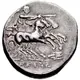 | توضیحات پشت سکه | Nike driving galloping biga right, holding kentron in right hand, reins in left; trident head below horses. |