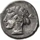 | Reverse description | Head of the nymph Aigeste to left, her hair bound with a ribbon, wearing earring and necklace. |