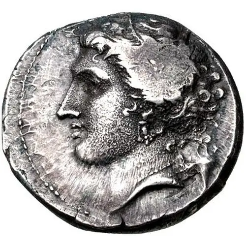 توضیحات پشت سکه Horse prancing left, star above, ΔΑZΟΥ below.