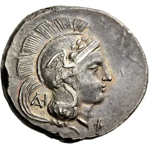 | Obverse description | Head of Athena to right, wearing Attic helmet adorned with a wing |