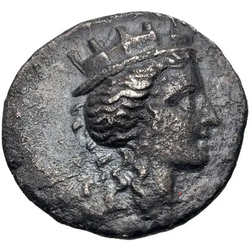 | Opis awersu | Turreted head of Tyche facing right within circle of dots. |