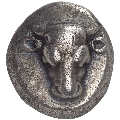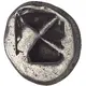 Descripción del reverso Diagonally divided quadripartite incuse punch.
