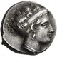 | Obverse description | Head of female left or right, hair in broadband, wearing triple-pendant earring and necklace. |