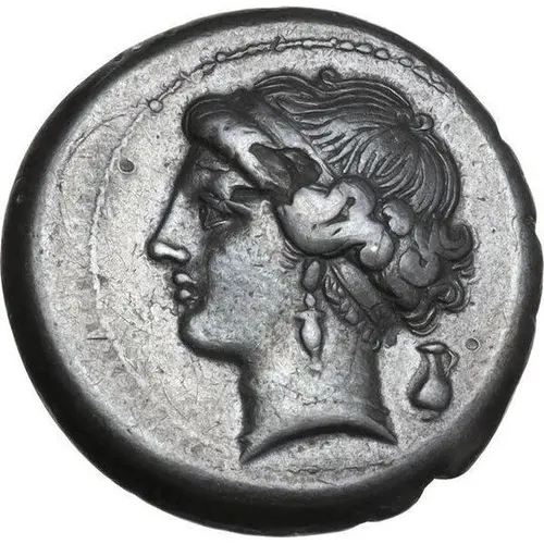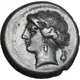 | Obverse description | Head of nymph to left, oinochoe behind her neck. |