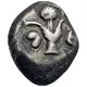 | Arka yüz açıklaması | Two silphium fruit (seed pods?) base to base, set diagonally within an incuse square. In the blank angle, pellet |