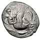 | Reversbeschreibung | Head of the river god Hipparis facing left, with horns on forehead. A fish on the left and the right fields. |