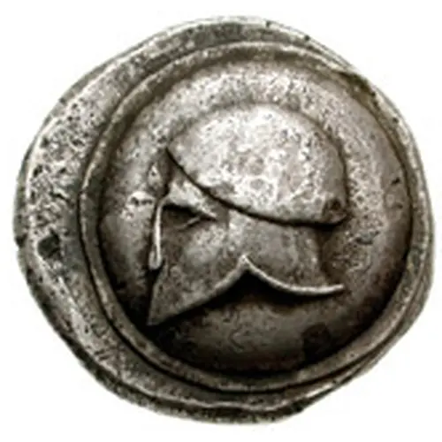 | Obverse description | Circular shield embossed with Corinthian helmet. |