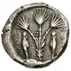| Reverse description | Dwarf palm tree between two greaves. Inscription around it. |