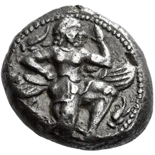 | Obverse description | Winged demon running right; in upper left and in lower right field, flowers. Dotted border. |