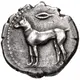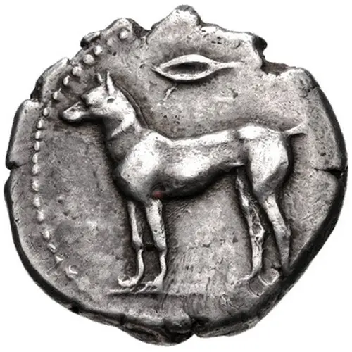 | Obverse description | Hound standing left with a barley grain above |