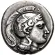 | Description de l’avers | Head of Athena right, wearing crested Attic helmet decorated with griffin; Δ above visor, Φ before throat |