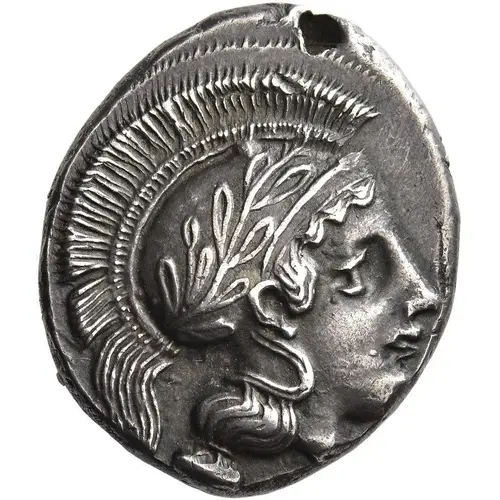 | Obverse description | Head of Athena right, wearing crested Athenian helmet decorated with olive wreath. |