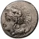 | Description de l’avers | Head of Athena left, wearing Phrygian helmet decorated with griffin; behind neck guard Ο. |